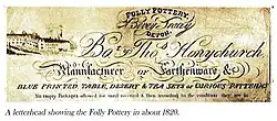 Proof that "The Folly Pottery" name was eventually adopted by the company and used in official documentation, as seen here on the company's letterhead from around 1820.
