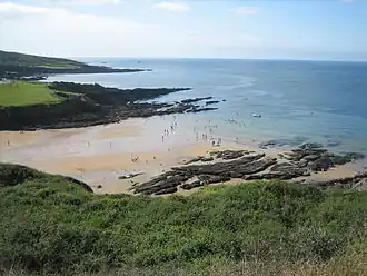 Bovisand is a natural coastline on the east side of Plymouth Sound in Devon, England. Despite the steep cliff paths and rocky surrounding, Bovisand features two beaches, a holiday park, privately owned bungalows and a diving centre at Fort Bovisand. The area, in the vicinity of Plymouth and Wembury, is used predominantly by locals, while tourists prefer the larger and better-known beaches elsewhere. It is often referred to as simply Bovi by locals. It lies just outside the boundaries of the city of Plymouth and instead within the district of South Hams.