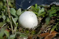 The fruiting body of the sporocarp is 1.5-3.0 (4.0) cm broad, subglobose, and attached to the substrate by a white mycelial cord. The exoperidium, which is white, felty, and shrivels in age, leaving buff to light-brown, grows up to 1.0 mm thick.[3] There are furfuraceous scales or low warts on the endoperidium, which consists of a thin, membranous, ochre-brown to medium-brown layer, opening via a ragged apical pore.[4] The gleba is soft, white, and becomes yellowish-olive to olive-brown, and finally to medium-brown at maturity. The subgleba and sterile base are absent. It has an undistinctive odor and taste. Although they are small, they are too small to be considered for an ordinary meal.