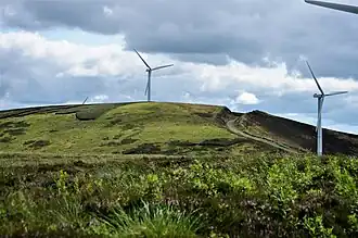 Bowbeat Hill is a hill in the Moorfoot Hills range, part of the Southern Uplands of Scotland. It lends its name to Bowbeat Onshore Wind Farm built on the hill and commissioned in 2003. The wind farm produces 31.2MW of power using 24 turbines.[3] It is commonly ascended with its neighbouring hills from Gladhouse Reservoir to the north.[1]