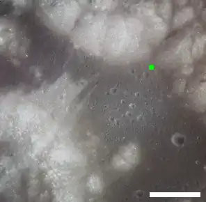 ![]() Location of Bowen-Apollo crater in Taurus-Littrow Valley. South Massif is at lower left, North Massif is at top center, and Sculptured Hills are at upper right. Scale bar is 5 km | |