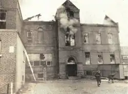 On October 6 1974, the school was a victim of arson that hit early in the morning which burned down the 1890 building and roof of the 1930 addition. While the 1890 section was slated for demolition, the 1930 section was going to be kept for repurposing. It took all day to put out the fire after it kept rekindling. The repair work to replace the roof and recover from water damage cost hundreds of thousands of dollars. This left only part of the 1890 basement, the 1930 and 1957 additions standing.[6]