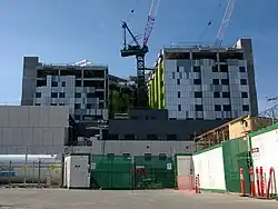 Box Hill Hospital's new $448 million clinical services building was designed by Jackson Architecture in Association with Silver Thomas Hanley and opened by former Victorian Premier Denis Napthine in August 2014.[6] The project was completed ahead of schedule.[7] Patients were moved to the new building on 30 September 2014.[8] The 10-storey Arnold St building houses the hospital's new emergency department, as well as maternity, cardiac and intensive care units. Box Hill Hospital's new 10-storey clinical services block (known as Building A) has been designed to accommodate future growth in Melbourne's east.[9]