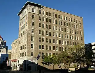 The Boxley Building is a historic commercial building located in Roanoke, Virginia. It was built in 1922, during a wave of post-World War I construction in the city.[3] The building is eight stories, and follows a pattern set by other skyscrapers of the time in consisting of three sections similar to a classical column.[3] The bottom section, or pedestal, is one story fronted with granite; the middle section, or shaft, consists of the next six stories built with beige enameled brick; the top section, or capital, is the eighth story fronted with richly decorated terra cotta panels topped with a finely detailed copper cornice.[3]