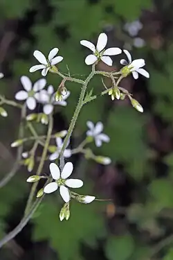 Boykinia is a small genus of plants related to the saxifrages. It contains at least nine species, known as brookfoams. Brookfoams are glandular rhizomatous creeping perennials with highly lobed or toothed leaves and inflorescences of petite flowers. They are native to North America (the west coast from Alaska to Baja California and the southeastern United States) and Asia (Japan).[2]