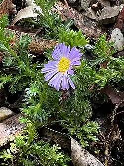 Brachyscome rigidula commonly known as cut-leaf daisy or hairy cut-leaf daisy,[2] is a perennial herb in the family Asteraceae and is endemic to Australia. It is a small herb with white or pale blue flowers.