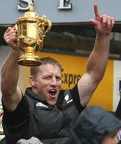 He first moved to rugby union in 2001, in his mid-twenties, and played as a lock. Over two spells in the sport, became the first player to win a World Cup, a Super Rugby title and the Heineken Cup.[5] He won 59 international caps for New Zealand, and was part of the team that won the 2011 Rugby World Cup. Thorn holds the world record for the oldest player to play in the final of a World Cup and win it, aged 36 years, 262 days vs France 23 October 2011.