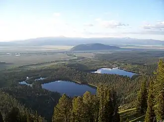 ![]() Bradley Lake, center with Taggart Lake, right. | |