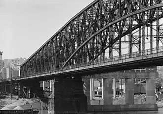 The Brady Street Bridge, also known as the South 22nd Street Bridge, was a steel bowstring arch bridge in Pittsburgh, Pennsylvania, which crossed over the Monongahela River at South 22nd Street. Its main span was a tied arch with a suspended road deck, with two through-truss side spans, carrying two traffic lanes between Brady Street on the Pittsburgh side and South 22nd Street on the south side. Approach viaducts were built at either end. The bridge was built by the Schultz Bridge and Iron Company.[2]