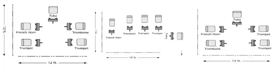 A brass quintet is a five-piece musical ensemble composed of brass instruments. The instrumentation for a brass quintet typically includes two trumpets or cornets, one French horn, one trombone or euphonium/baritone horn, and one tuba or bass trombone.The two instrumentations of the brass quintet that are currently in use are the quintet of two trumpets, horn, trombone, and tuba; and the quintet of two trumpets, horn, trombone, and bass trombone".[1][2] Musicians in a brass quintet may often play multiple instruments. Trumpet players for instance may double on piccolo trumpets and flugelhorns. There can be variation in instrumentation depending on the type of quintet. In some quintets, the horn is replaced by an additional trombone. Euphonium may also be substituted for the trombone part. While the tuba is considered a standard, the range and style of many pieces lend themselves to being played with bass trombone as the lowest-pitched instrument. Additionally, some pieces call for the use of percussion instruments, particularly the snare drum, tambourine, or timpani.