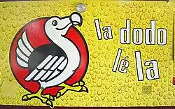 The first product of the Brasseries de Bourbon, and by far now their most sold and widely known, is the blonde lager Bourbon, known popularly as Dodo, named after the now extinct bird of Mauritius. Its logo of a smiling dodo and the creole slogan la dodo lé la (the dodo is here) are found painted on the walls of establishments selling the beer. Since 1996, the group has also produced some white and reddish beers. In addition, it also imports and bottles a variety of other drinks.
