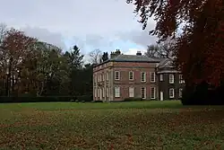 The house is built of red and pale brown brick, with sandstone dressings, a hipped Westmorland slate roof, two storeys and attics. The south front has five bays on a stone plinth, with giant pilasters and a parapet. It has a chamfered floor band, a moulded cornice with a pulvinated frieze over the ground floor, and a cornice under the parapet. Steps lead up to the central doorway that has an eared architrave, and a pediment containing a pulvinated frieze on consoles. The windows are sashes in architraves, with coved lintels and chamfered sills, the window above the doorway with a rusticated surround. The east and west fronts have four bays. Inside, there is a grand staircase hall, and two ground floor rooms with early-18th century decoration.[2][3]