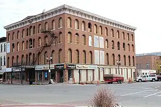 The Brazelton House Hotel is a historic building located in Mount Pleasant, Iowa, United States. William P. Brazelton was an early leader in the city's development.[2] He owned the Brazelton Banking House and he was one of the directors of the Brazelton House Company, which built the hotel. It is not clear, specifically, why the hotel bears his family name.[3] The construction of the hotel in 1856 coincided with a building boom in Mount Pleasant with the extension of the Burlington and Missouri River Railroad into town. It was built with the belief that Mount Pleasant would need a large first class hotel, but it had financial problems from the beginning and went through a series of owners until it no longer functioned as a hotel about 1970. The building was listed on the National Register of Historic Places in 1986.[1] In 2015 the upper floors were converted into apartments while the main floor continued to house retail businesses.