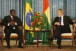 In September 1973, Guinea-Bissau declared its independence from Portugal.[2] On 16 July 1974 Brazil recognized Guinea-Bissau's independence in advance of Portugal's recognition. Shortly thereafter the two countries established diplomatic relations.[3] That same year, Brazil opened an embassy in Bissau.[2] In 1984, Brazilian President João Figueiredo paid an official visit to Guinea-Bissau, the first for a Brazilian President. The visit was reciprocated in 1997 with the visit to Brazil by Bissau-Guinean President João Bernardo Vieira.[2] There have been numerous high-level visits between leaders of both nations since the initial visits.