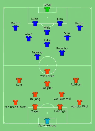 - ^ a b "Tactical Line-up – Quarterfinal – Netherlands-Brazil" (PDF). FIFA. 2 July 2010. Archived from the original (PDF) on 21 August 2010. Retrieved 2 July 2010.
