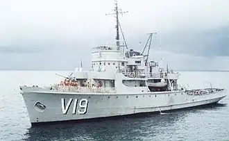 Cv Caboclo (V19) is an Imperial Marinheiro-class corvette of the Brazilian Navy. Caboclo was the fifth of the Imperial Marinheiro-class corvettes ordered by the Brazilian Navy in 1953. Caboclo was launched on 19 August 1954, and commissioned on 16 July 1955.[1]
