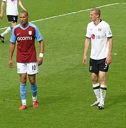 During the summer of 2007 newspapers linked him with Premier League clubs Newcastle United, Liverpool, Aston Villa and Manchester City.[7] Hangeland refuted the rumours and said he was glad to play for Copenhagen, but finally on 18 January 2008 after days of speculation, it was officially confirmed that he had signed for Fulham, where he was reunited with his former manager from Viking, Roy Hodgson, and former Viking FK striker Erik Nevland.[8]