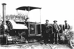 Construction of the waterworks was aided by a 18 in (457 mm) gauge tramway which ran from a wharf on the River Brede to the waterworks. Rail was 16 pounds per yard (7.9 kg/m). A steam locomotive was used to haul construction materials. Four three-ton bogie open wagons were also provided. On completion of the waterworks, the tramway and locomotive were retained to bring coal from the wharf to the waterworks to supply the boilers for the steam engines. A pony was the alternate motive power when the steam locomotive was out of service. Although no public passenger service was provided, the tramway did carry passengers on occasion when officials from Hastings Corporation visited the waterworks. Straw and hessian sacks provided makeshift seating in the open wagons.