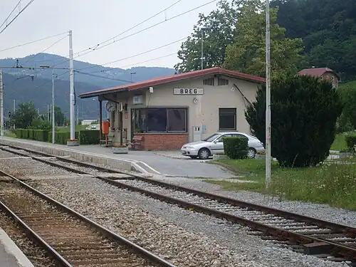 Breg railway station (Slovene: Železniška postaja Breg) is the principal railway station serving Breg, Sevnica and Šentjur na Polju.
