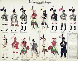 Each bregada adapted its own uniform as an identity, also with different colors and motifs, as well as other identities such as the soldier's banner, spear, and instrumentation.[7]