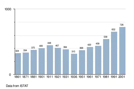 - ^ All demographics and other statistics: Italian statistical institute Istat.