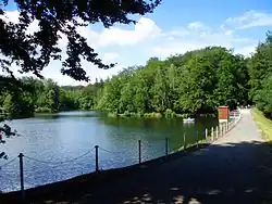 The Bremer Teich ("Bremer Pond") is an historic reservoir that lies south of the two villages of Bad Suderode and Gernrode in the Harz Mountains of Germany, and is used as a recreation area (natural swimming pool and camp site). It impounds the Bremer Graben, an artificial channel fed by water from the Bode and the Saale. The water reservoir was built in the 18th century in the Lower Harz (Saxony-Anhalt). It has an area of ca. 4 ha. The pond is located on the Romanesque Road and the North Harz Cycleway.