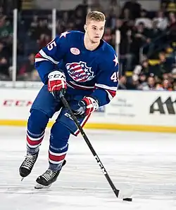 ![]() Guhle with the Rochester Americans in 2019 | |||