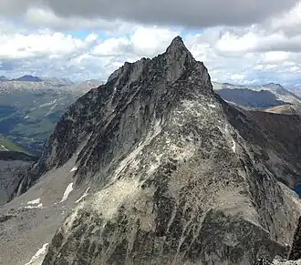 Brenta Spire is a peak in the Purcell Mountains of the Columbia Mountains in southeastern British Columbia, Canada. Brenta Spire is the highest and middle of the three granite spires on a cirque west of Cobalt Lake.[1]