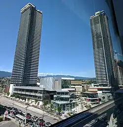 In November 2014, the 11-hectare (28-acre) Brentwood Town Centre site underwent a major redevelopment as part of a development initiative entitled "The Amazing Brentwood", which aims to create a master-planned neighbourhood.[9][10] It consists of 120,000 m2 (1,300,000 sq ft) of retail space, 46,000 m2 (500,000 sq ft) of office space, and three residential high-rise towers which were to be completed between 2018 and 2021.[11]