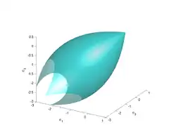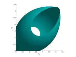 The parameters have to be chosen with care for reasonably shaped yield surfaces. If is the yield stress in uniaxial compression, is the yield stress in uniaxial tension, and is the yield stress in biaxial compression, the parameters can be expressed as