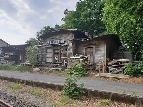 Brest-Aspe is a railway station in northwestern Germany. It is owned and operated by EVB, with regular trains on the Bremerhaven–Buxtehude railway.