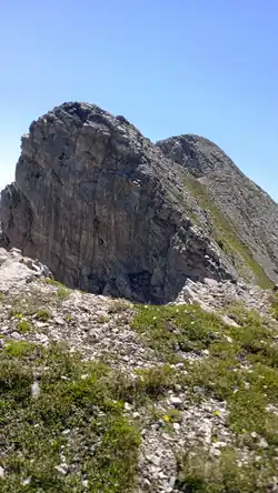 The summit can be reached following the main ridge both by the Bocchin del Bianco and Bocchin dell'Aseo.[1] These are hiking itineraries waymarked with old paint signs and small cairns,[12] suited for well-trained hikers.[9] In summer, also with good weather, haze is quite common, but wonderful blooms can be admired.[13]