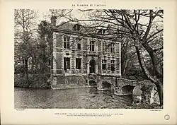 Its architectural design is in keeping with American colonial architecture but exhibits French Huguenot influence.[2] Possibly a simplified copy of the c. 1675 Chateau de la Haye d'Esquermes[5] near Loos les Lille, France, evidence of the French influence in its architecture is seen through many stucco enrichments to the exterior and its high-pitched roof.[4]
