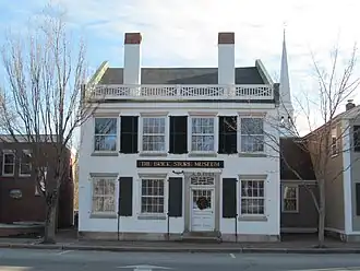 The corner structure, currently painted a salmon color, was built in 1814 by Moses Savary. It was originally painted white, and because most buildings in Kennebunk were then yellow, this building became known as "the white store."[4] The building was used almost continuously as a market until becoming part of the museum. Its last occupant was an antique shop. The three buildings on the block were purchased by Barry as they became available, the last in 1958; eventually, all four structures were connected on the interiors to form one cohesive block.