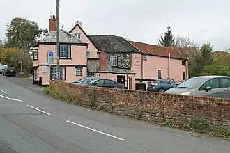 The Bridge Inn (also known locally as the Pink Pub) is a Grade II listed public house at Bridge Hill, Topsham in the county of Devon, England. Mentioned as a dwelling in Domesday Book, the building was largely constructed in the 18th century of cob and stone, with a 19th-century brick addition. Queen Elizabeth II visited the inn on 27 March 1998, her first official visit to a pub.