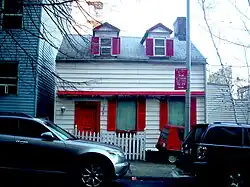 One of the most notable homes in Bridge Plaza is 167 Concord Street, called the "most photogenic house in Downtown Brooklyn" by the Brooklyn Eagle.[10] The miniature house features a candy apple red Citicar parked in the front yard. The cottage was built in 1762 and was surrounded by a stone wall dating to about 1820.[11][12]