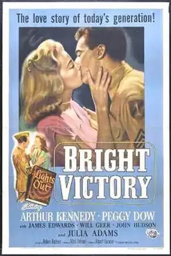 Bright Victory is a 1951 American drama romance war film directed by Mark Robson, and starring Arthur Kennedy and Peggy Dow.[1][2][3]