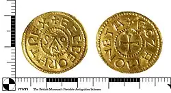 When Brihthelm was appointed Bishop of Selsey (possibly suffragan bishop) in 956, because his lands at Selsey had been seized, it appears that he and his chapter may have moved to Chichester for a while as a charter from 956,[d] is addressed to the "brethren of Chichester".[e][9] A 957 charter,[f]in Brihthelm's name, indicates how the bishop intended to have lands restored to the South Saxon see that were "uncanonically"[b] seized by Ælfsige.[12] According to the diploma Brihthelm paid one hundred mancuses of pure gold to King Eadwig for the return of the diocesan lands. The lands that Eadwig was to restore were to be enjoyed by Brihthelm in his lifetime and then returned "in perpetuity to the place where the episcopal seat of the South Saxons is situated". The land so returned amounted to almost half of the bishop's holdings at the time of the Domesday survey. The original foundation confirmed by Cædwalla[g] to Wilfrid was 87 hides, the restoration was to include 42 hides on the Manhood Peninsula and in excess of another 30 hides from the surrounding districts.[14] [15][16][17]