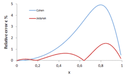 This has a maximum relative error of 4.9% at the vicinity of x = ±0.8. Greater accuracy can be achieved by using the formula given by R. Jedynak:[24]