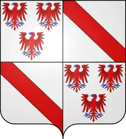 ![]() D'argent, à trois aigles de gueules, 2 et 1 membrées et becquées d azur[1] | |