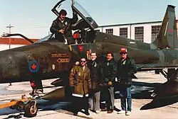 The first Canadian Forces Canadair CF-5 arrived at Bristol Aerospace on 1 April 1987 and was received by the company Flight Service crew.