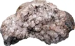 Dolomitic Conglomerate formed during the Triassic period (about 250 to 200 million years ago) in the Bristol Avon Gorge as a result of clays mingling with rock debris scree which had formed against the Carboniferous limestone cliffs of the gorge.[5] The geodes containing the Bristol Diamonds are frequently found in this conglomerate, in the areas of Bridge Valley Road, Leigh Woods, Sea Mills and St Vincent's Rocks.[6][7][8] The geodes were formed from quartz, either megaquartz or fibrous quartz, the diamonds themselves resulting from the dissolution of nodules of anhydrite leaving a void which allowed the silica crystals to grow.[9][10]