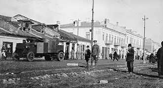 ![]() Pierce-Arrow armoured lorry of the Russian Armoured Car Division in Galați, Romania | |