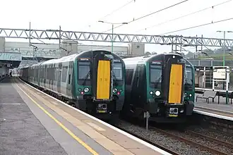![]() 2 London Northwestern Railway Class 350s at Milton Keynes Central | |