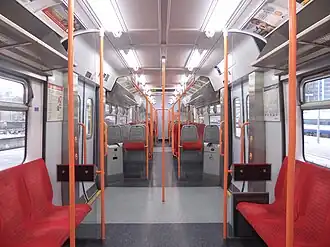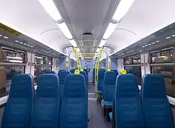 Interior of a former Class 508 trailer from a South West Trains refurbished Class 455/7