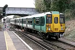 The British Rail Class 455 is an electric multiple unit (EMU) passenger train built by BREL[1] between 1982 and 1985. It is operated on suburban services in Greater London and Surrey by South Western Railway, as well as formerly by Southern. They are currently being replaced by the Class 701 EMU on the South Western Railway network.