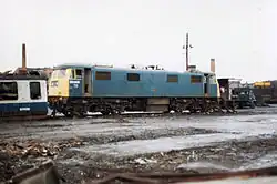 The second engine was 83004 which, on 24 December 1977, was severely damaged in a collision with a Class 47 at Willesden.[1] In 1983, ten of the remaining thirteen engines were withdrawn, all being sent to the Vic Berry Scrapyard in Leicester. The final three were withdrawn in 1989, with two of the three being scrapped at MC Metals of Glasgow in 1993.[11]