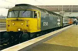 These four locomotives were converted from Class 47 locomotives in 1989, and were used to haul test-trains throughout the country. Number 97561 was repainted in maroon livery and named "Midland Counties Railway" to commemorate the railway's 150th anniversary.