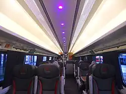 ![]() The interior of Standard Class aboard a Virgin Trains East Coast refurbished Mark 4 TSO vehicle | |