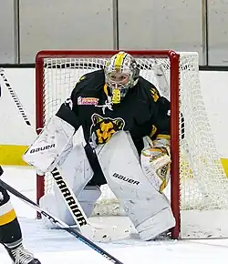 Brittany "The Otter"[1] Ott (born June 12, 1990) is an American professional ice hockey player. As of 2021, Ott plays for the New Hampshire region team in the Professional Women's Hockey Players Association. She previously played two seasons for the Boston Blades in the Canadian Women's Hockey League and four seasons with Boston Pride of the National Women's Hockey League (NWHL).[2] Ott played college hockey for the Maine Black Bears before declaring herself into the 2013 CWHL Draft.[3] She is the first goaltender to have won the Clarkson Cup and the Isobel Cup in a career.
